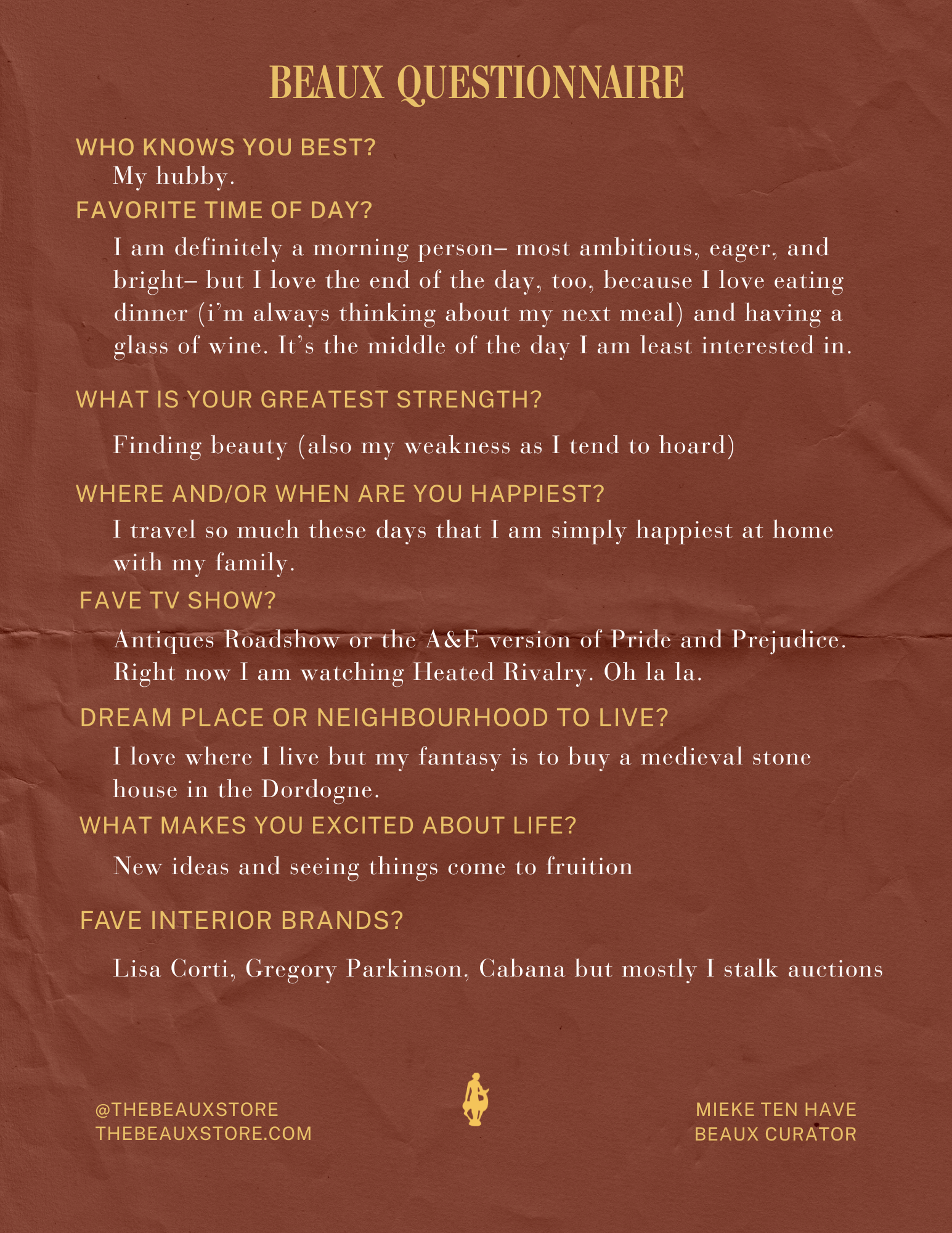 We are fairly confident that everyone within the interiors world has seen the work of Mieke ten Have. We have been personal fans of Mieke’s eye for many years, so it is the dream dot com to have her curate a collection for The Beaux Store.
