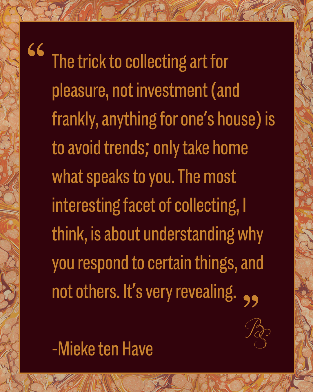 In 2023, she formally established Mieke ten Have Studio, expanding her practice to include interior design. Her signature approach to design and styling is editorial in perspective, colorfully and historically nuanced, and always attuned to the personality of the spaces she touches.