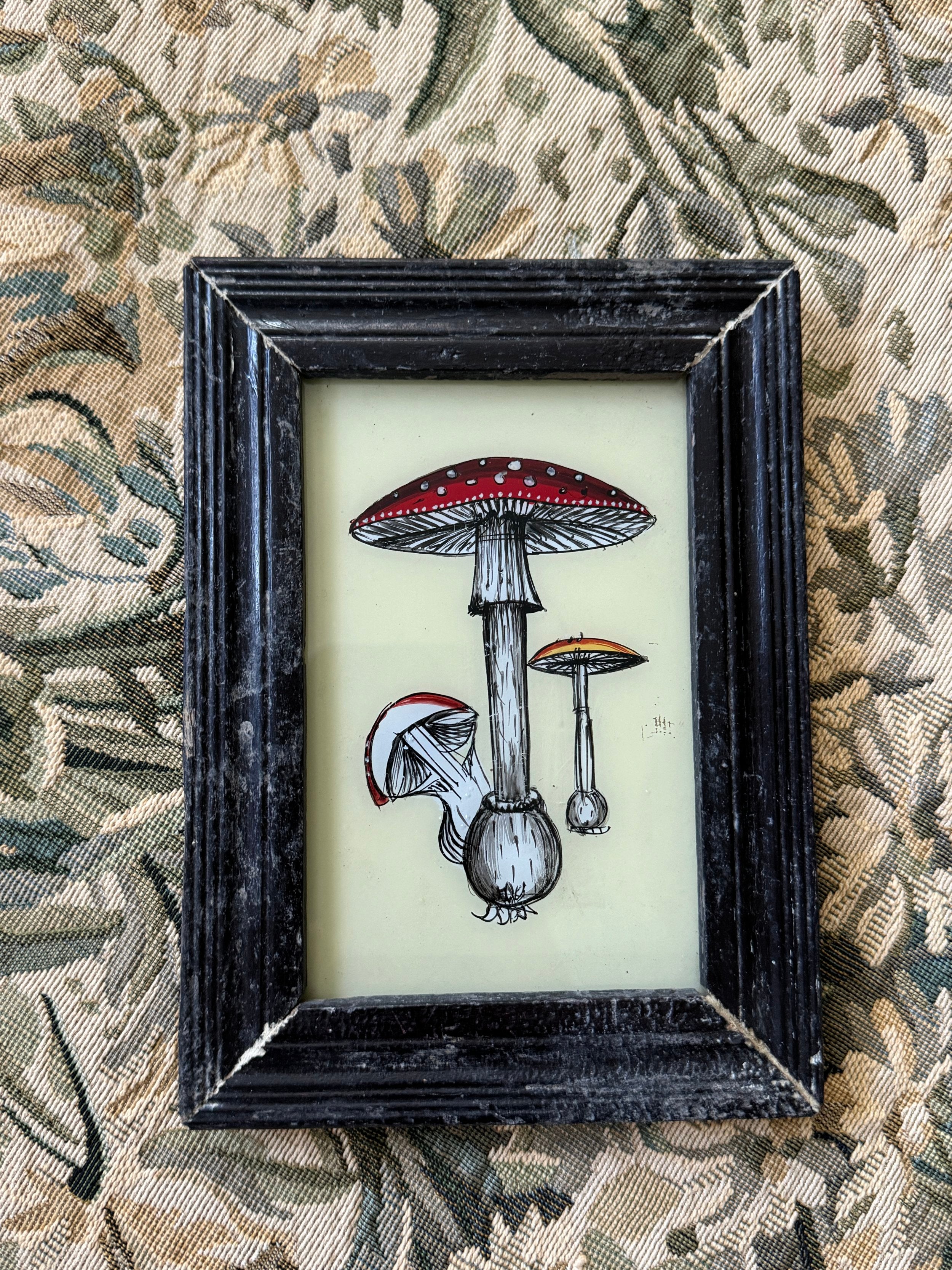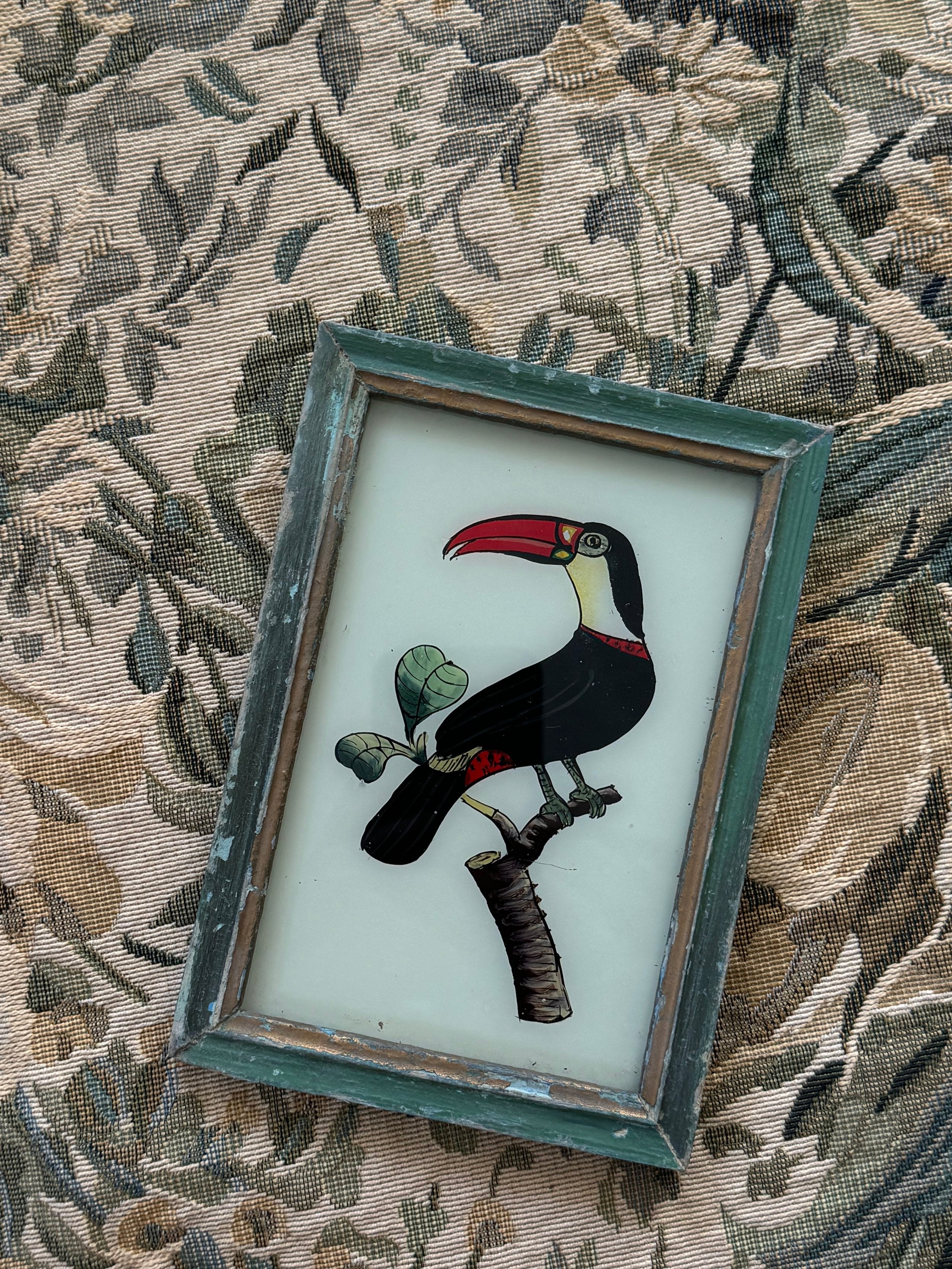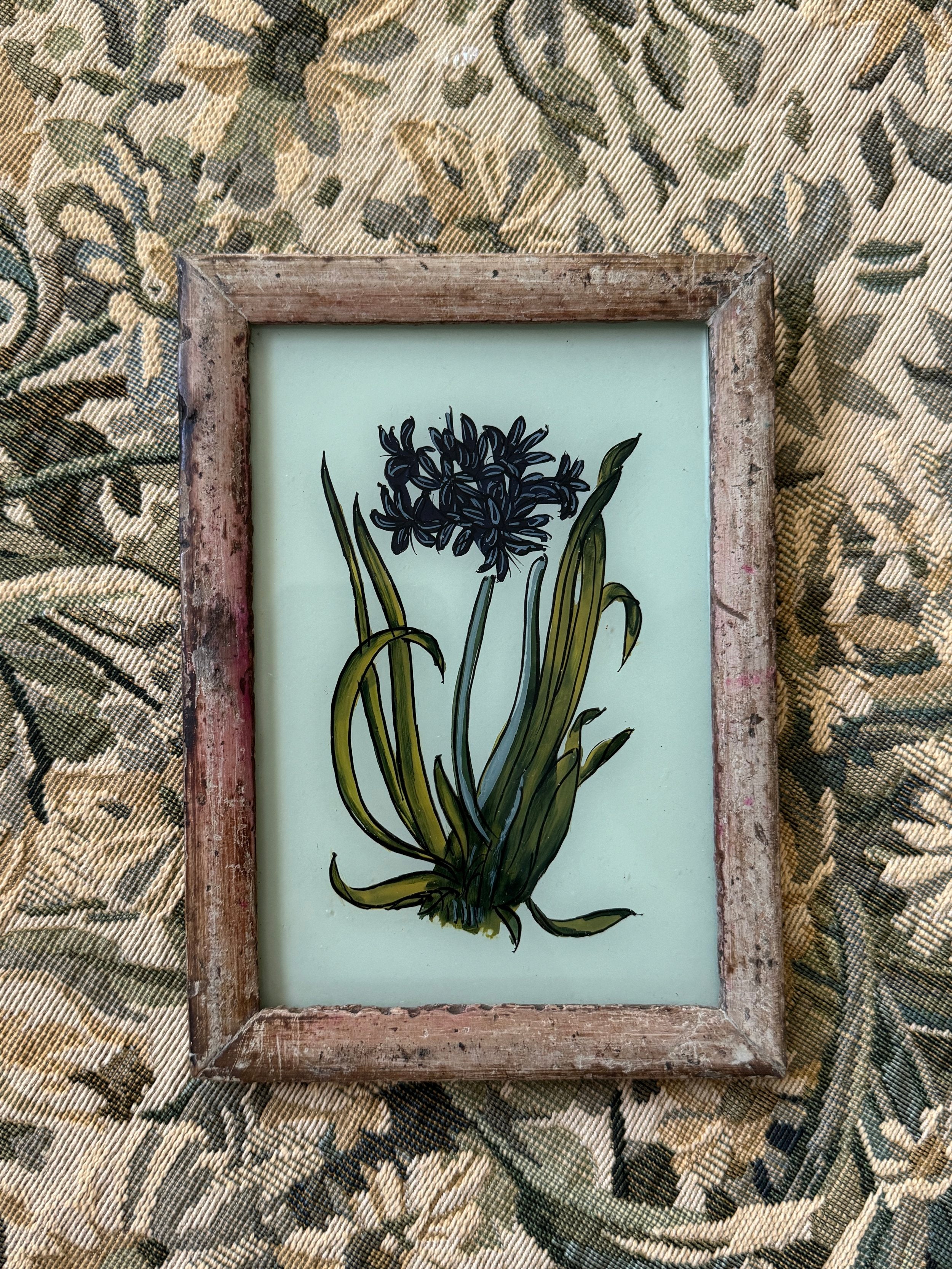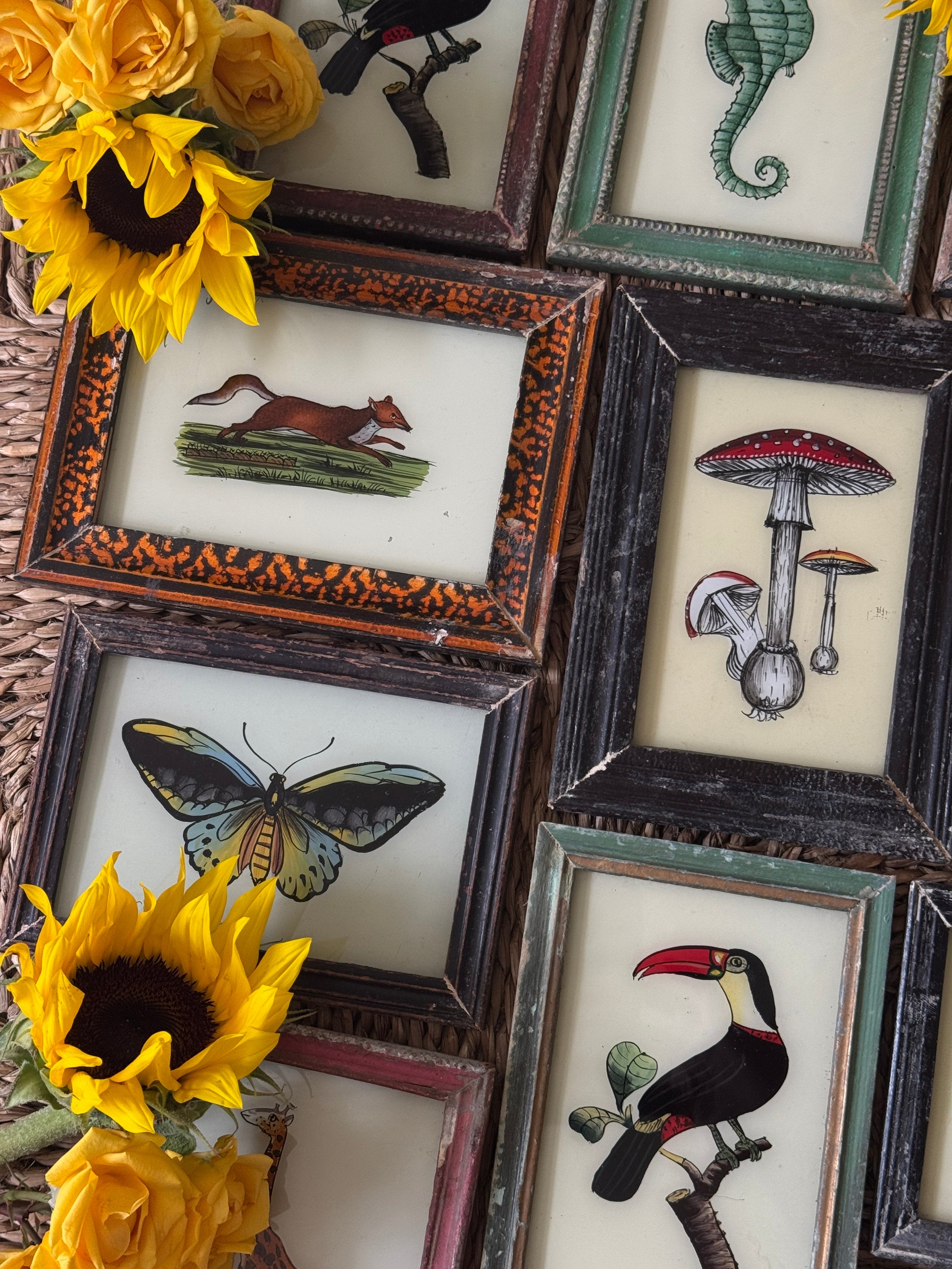 These beautiful and hardy pieces are some of our favourites for good reason. They are hand-painted on the reverse side directly onto the glass and placed into vintage frames in India. We love to pop them in places that don't normally allow art, like damp or dark areas of the house.