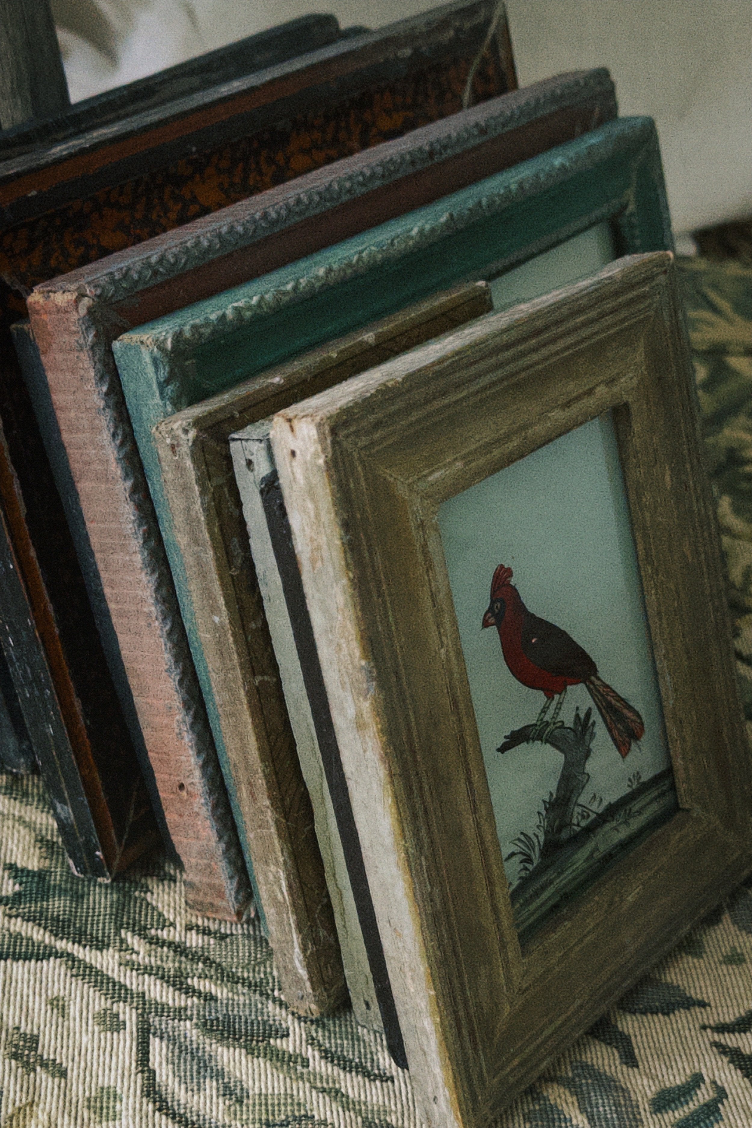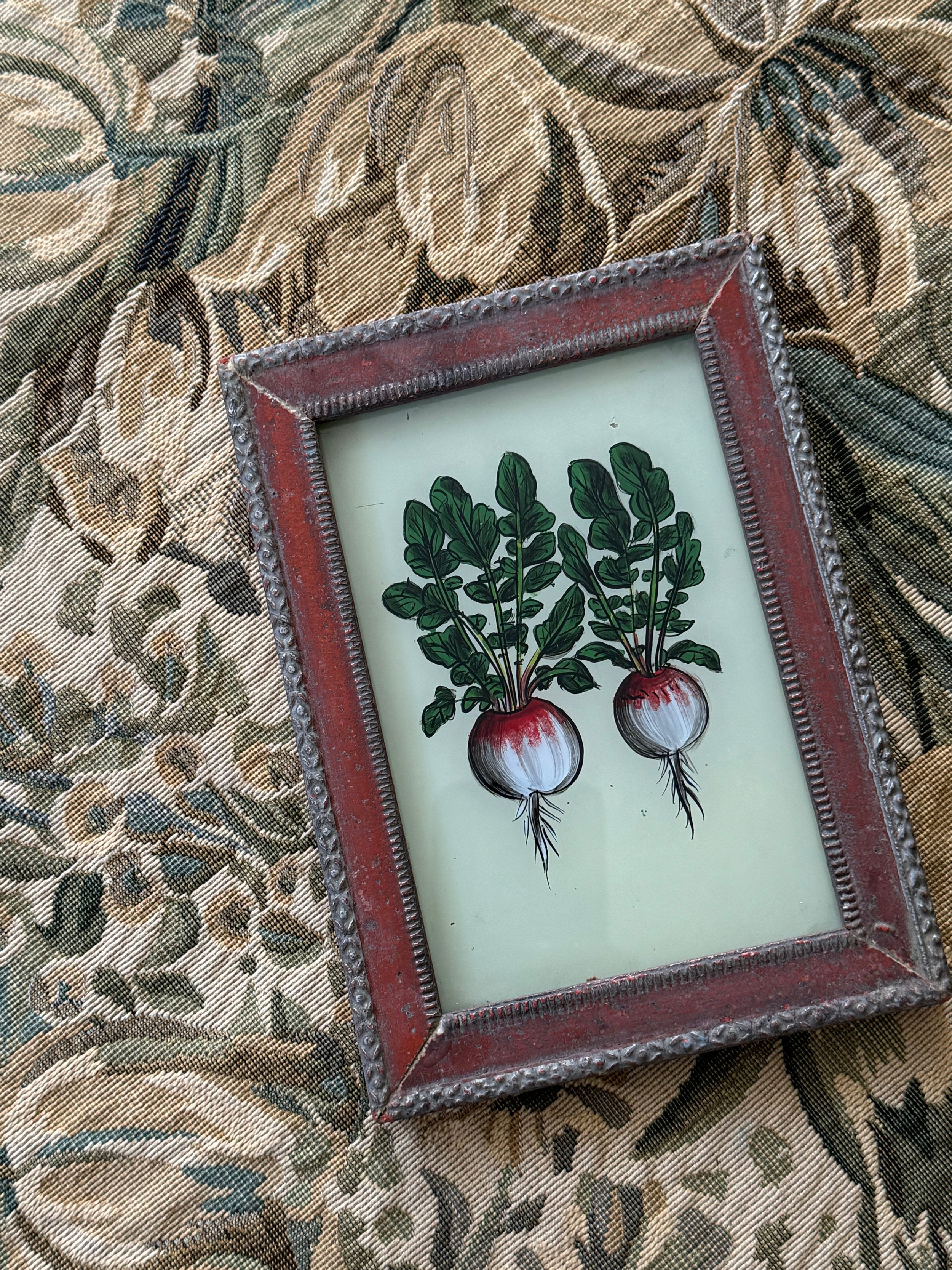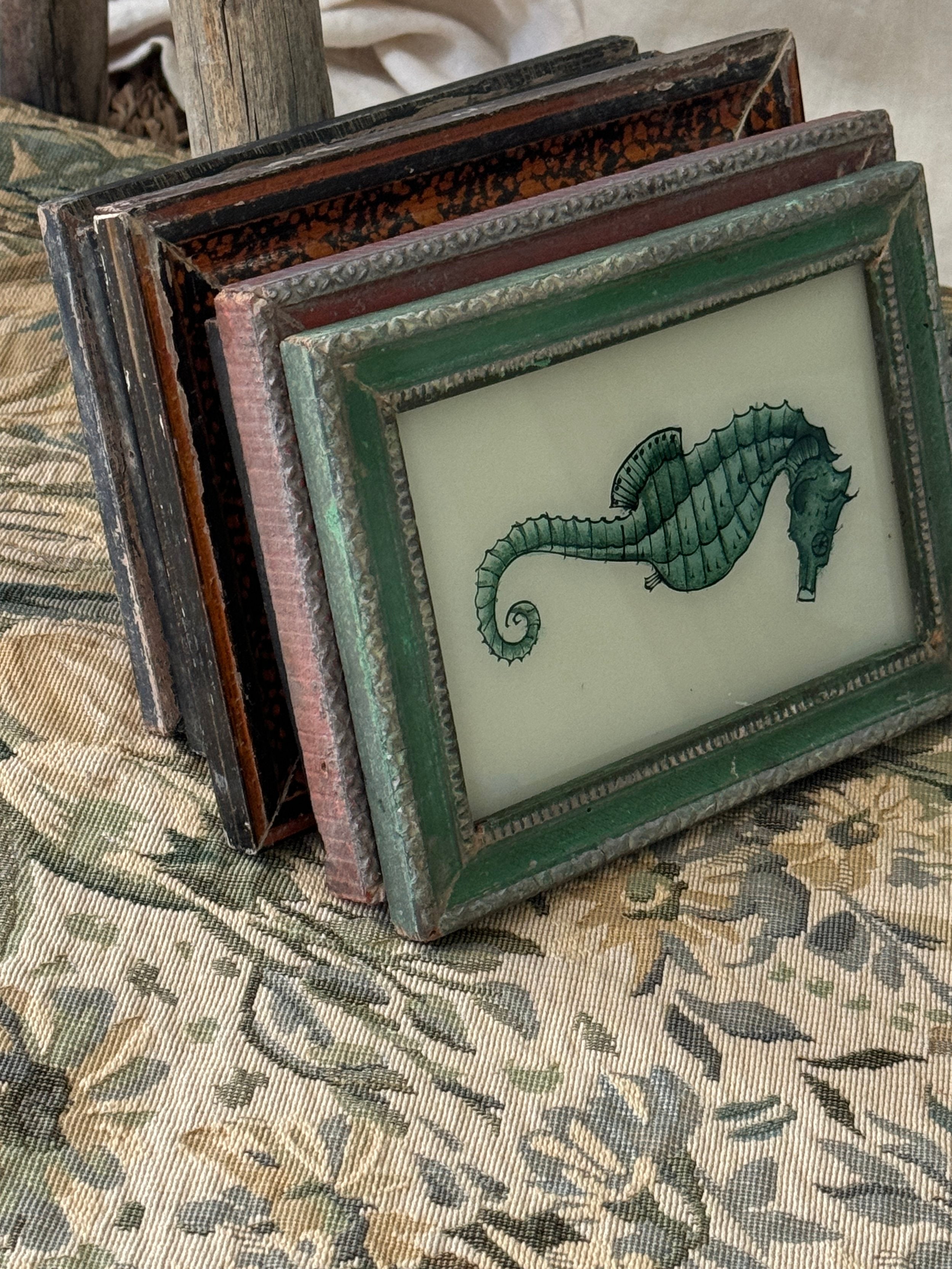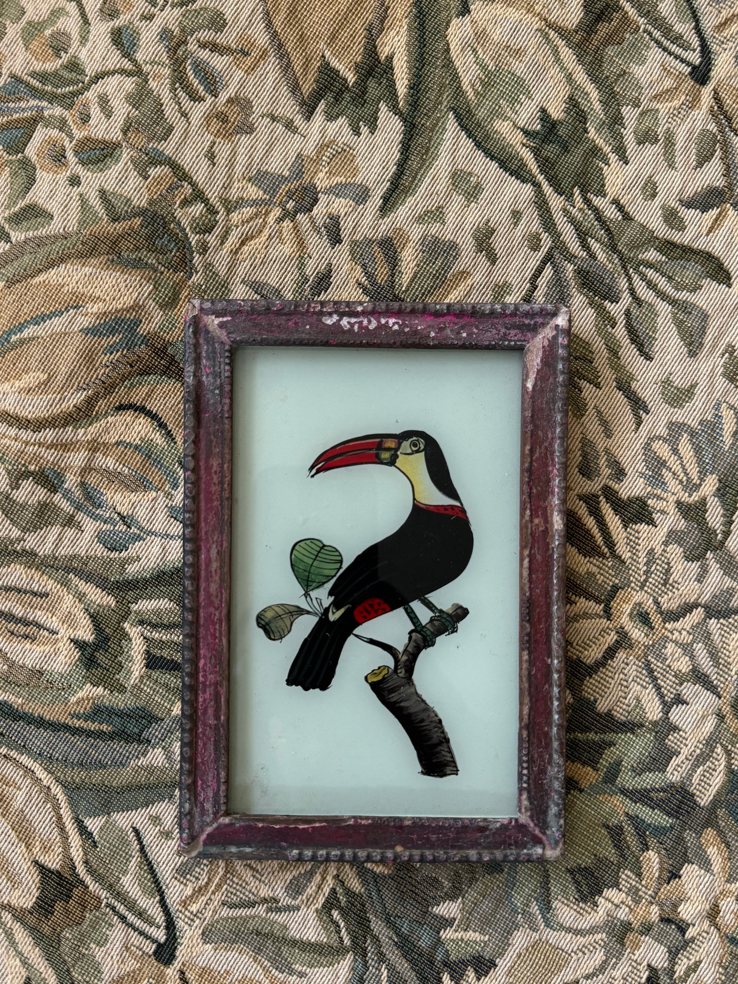 These beautiful and hardy pieces are some of our favourites for good reason. They are hand-painted on the reverse side directly onto the glass and placed into vintage frames in India. We love to pop them in places that don't normally allow art, like damp or dark areas of the house.