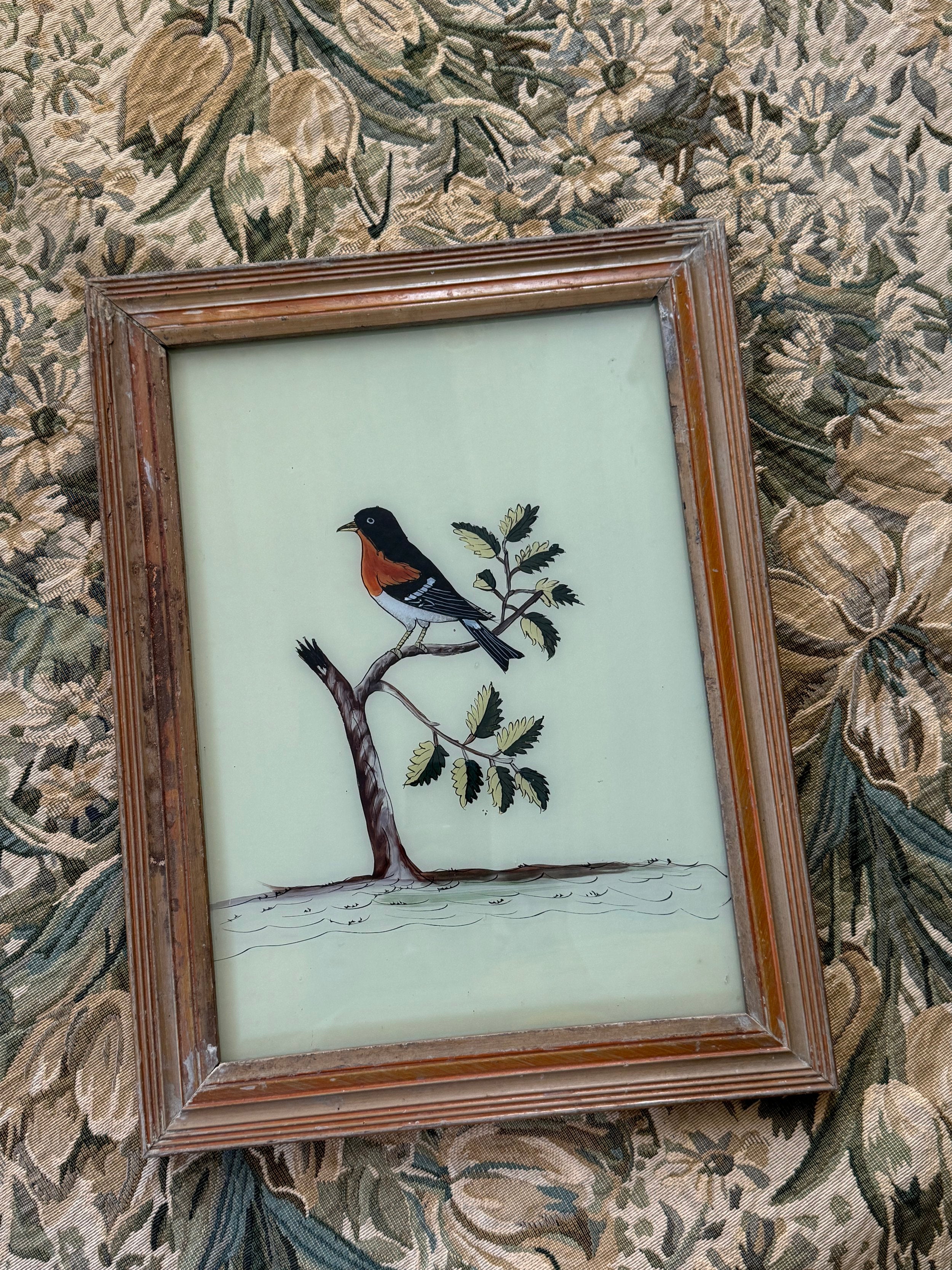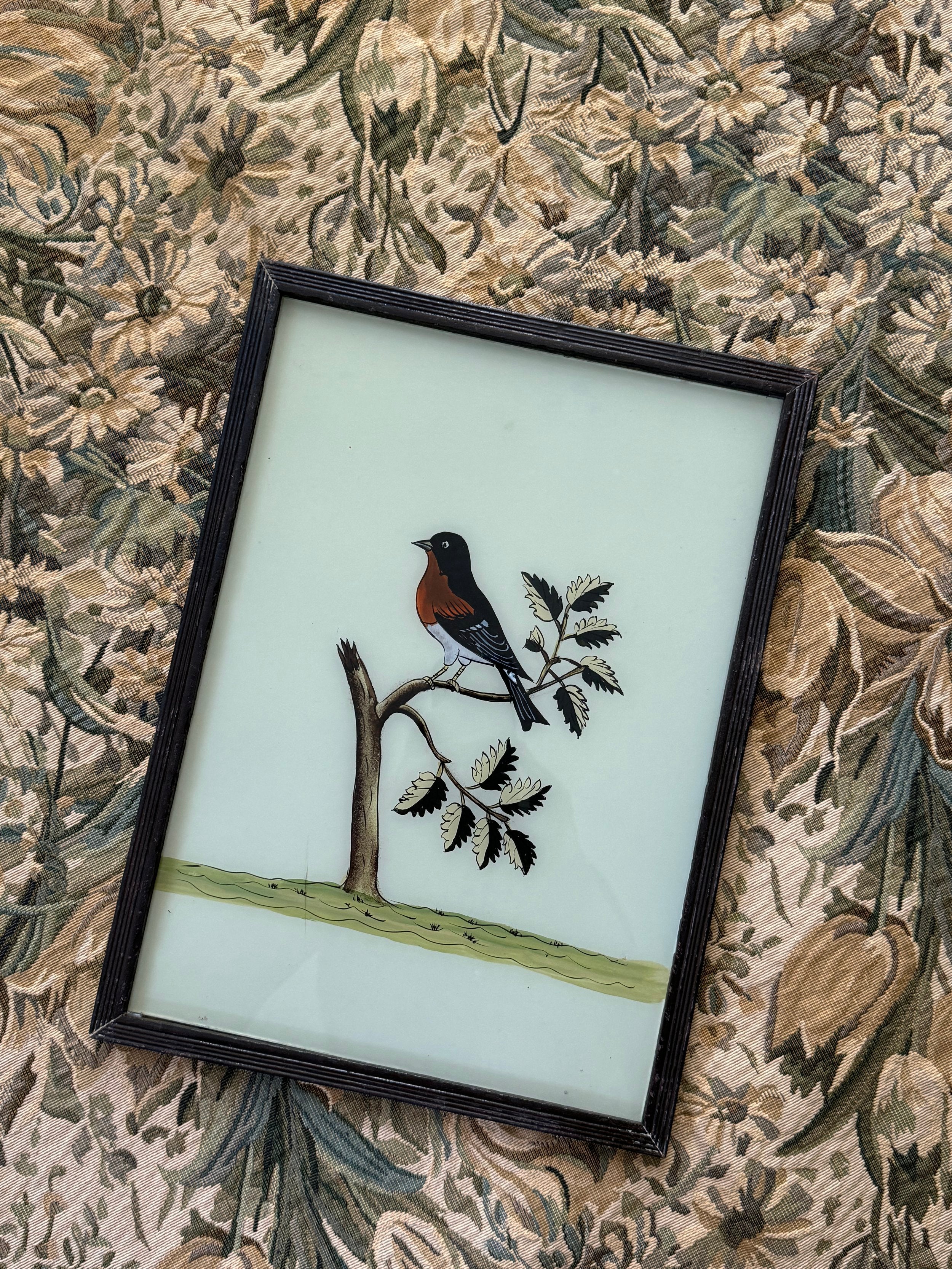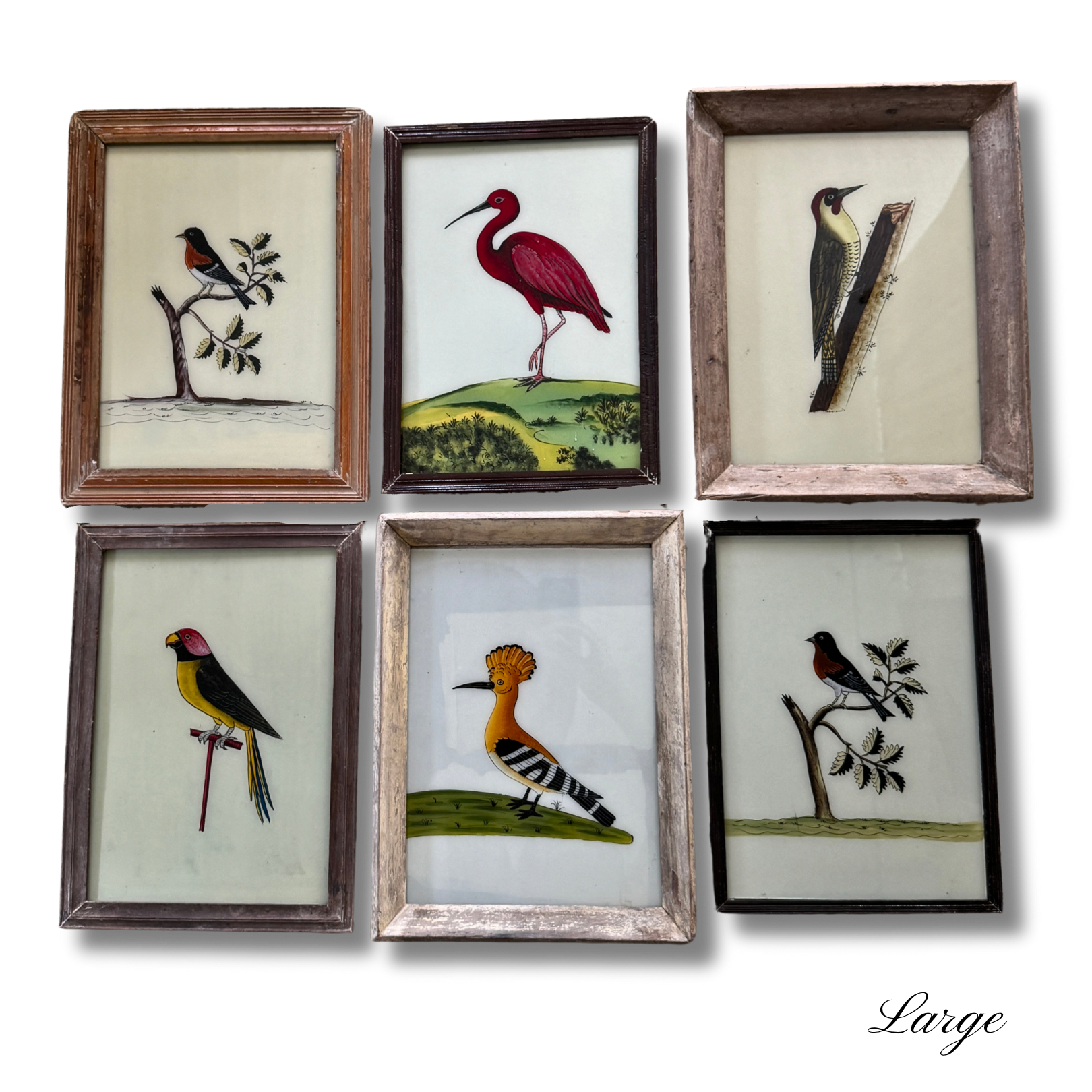 These beautiful and hardy pieces are some of our favourites for good reason. They are hand-painted on the reverse side directly onto the glass and placed into vintage frames in India. We love to pop them in places that don't normally allow art, like damp or dark areas of the house.