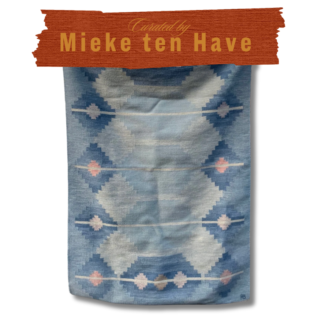 A rare 1940s Swedish flat-weave rug by Polly Björkman, composed in serene shades of sky blue, indigo, and muted rose. The design balances geometry and softness—rows of diamond medallions unfold across the field, their edges softened by Björkman’s characteristic use of tonal gradation. The restrained palette, punctuated by pale pink accents, gives the piece both harmony and liveliness, making it equally suited for modern interiors or traditional Scandinavian settings. Woven with wool, it reflects the enduring artistry of mid-century Swedish textile design, where craft, utility, and beauty converge seamlessly.
