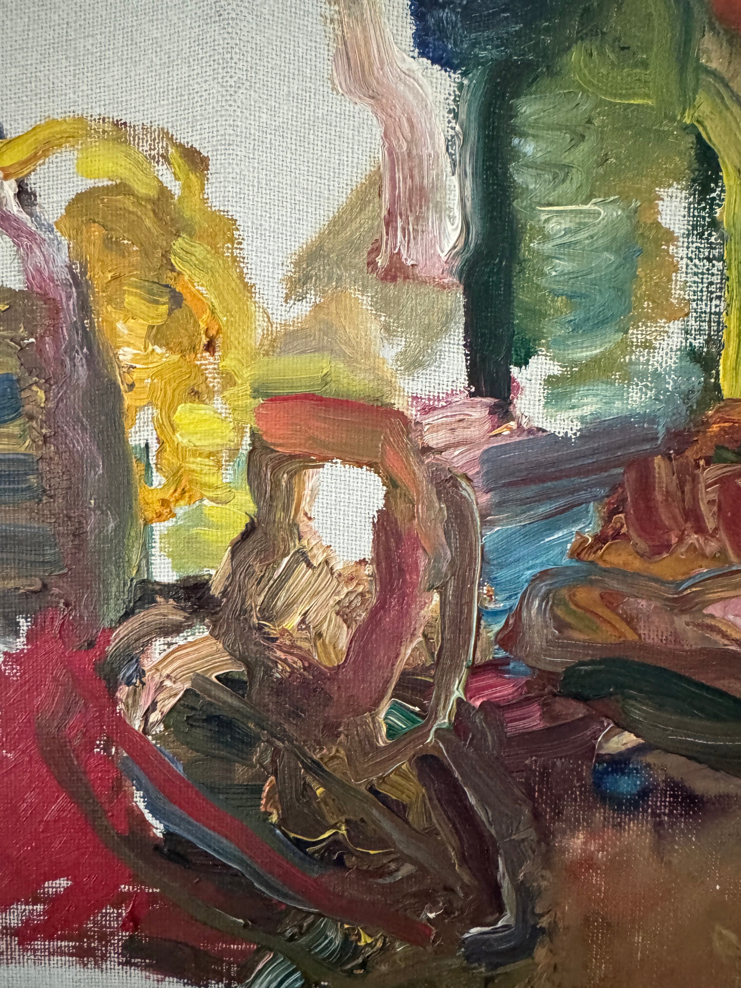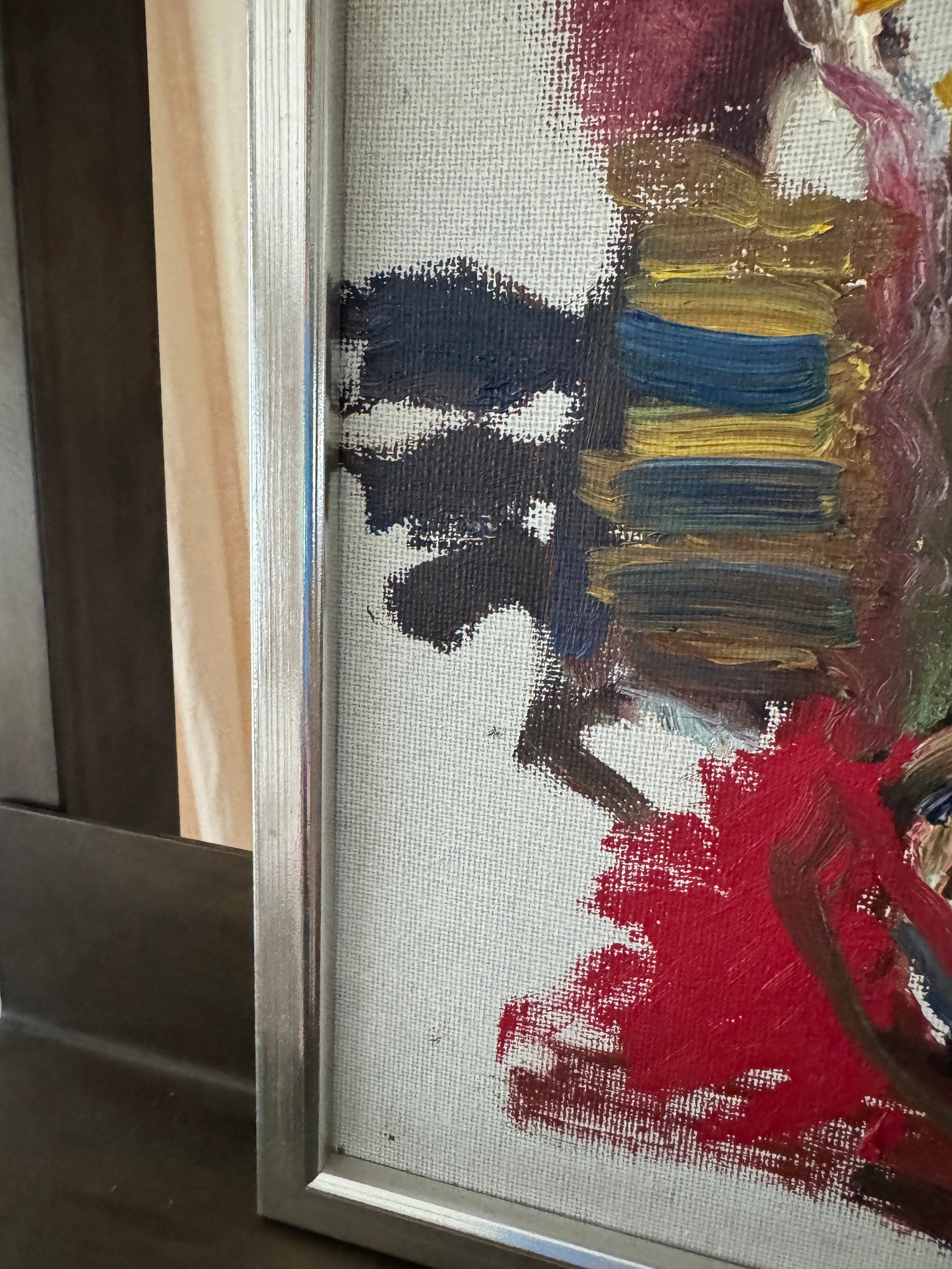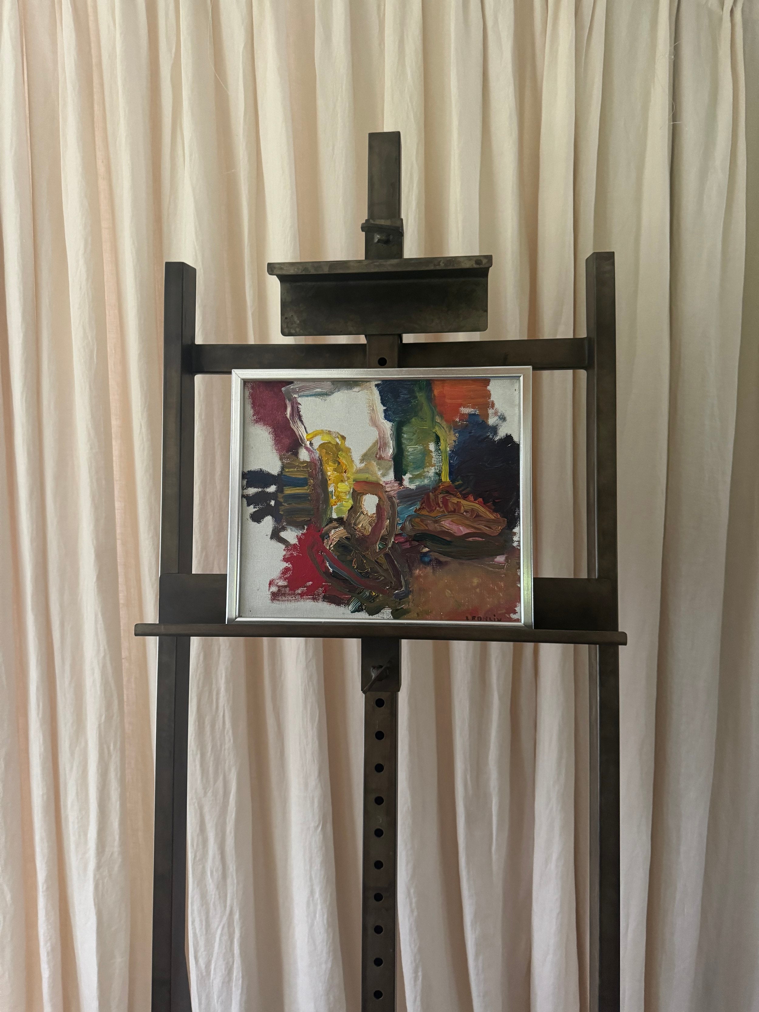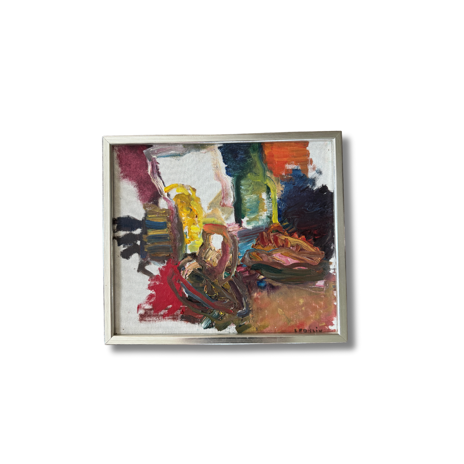 This Swedish midcentury oil painting captures a dynamic sense of movement through bold, impasto brushstrokes and a vibrant palette. The interplay of color feels instinctive and full of emotion, blending rich jewel tones with warm, earthy hues, creating a balanced yet captivating composition. Its abstract nature allows for endless interpretation, making it a perfect addition to a modern interior that values artistic expression. Framed in a minimalist border, the artwork maintains its visual punch while the clean lines of the frame let the brushwork truly shine. It’s an ideal piece for those who appreciate the intersection of Scandinavian design and bold artistic energy.