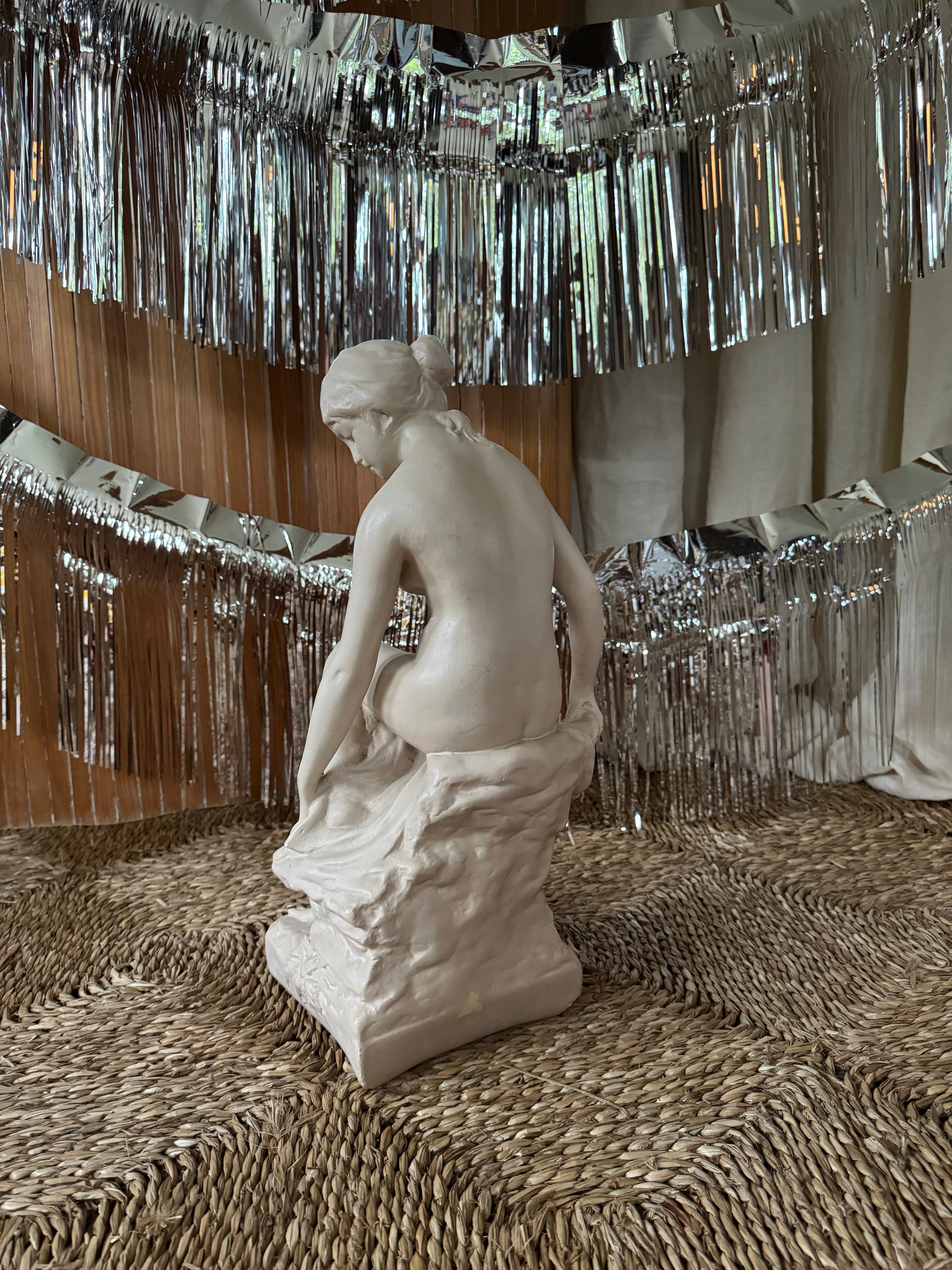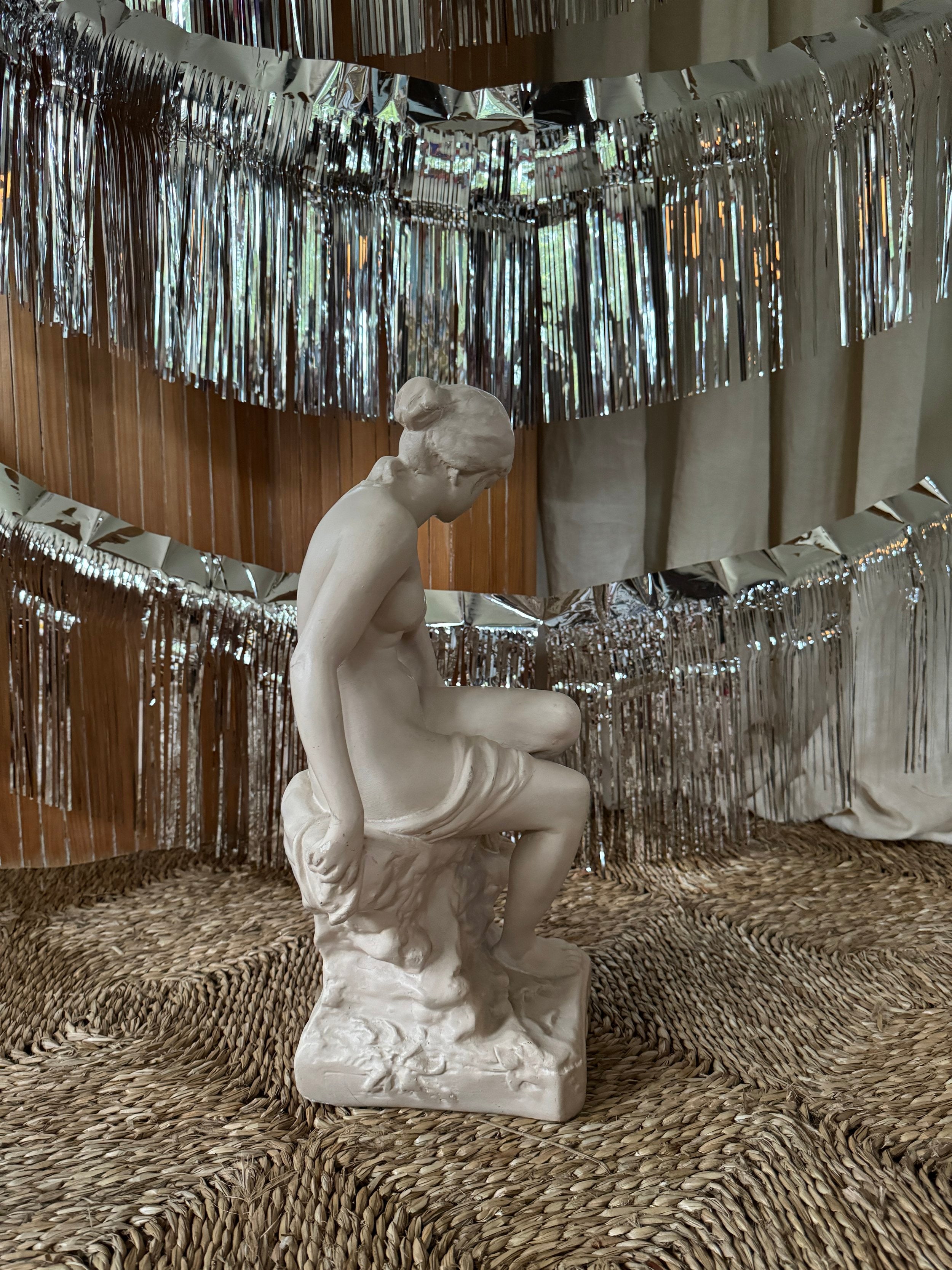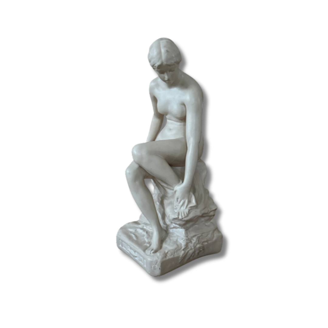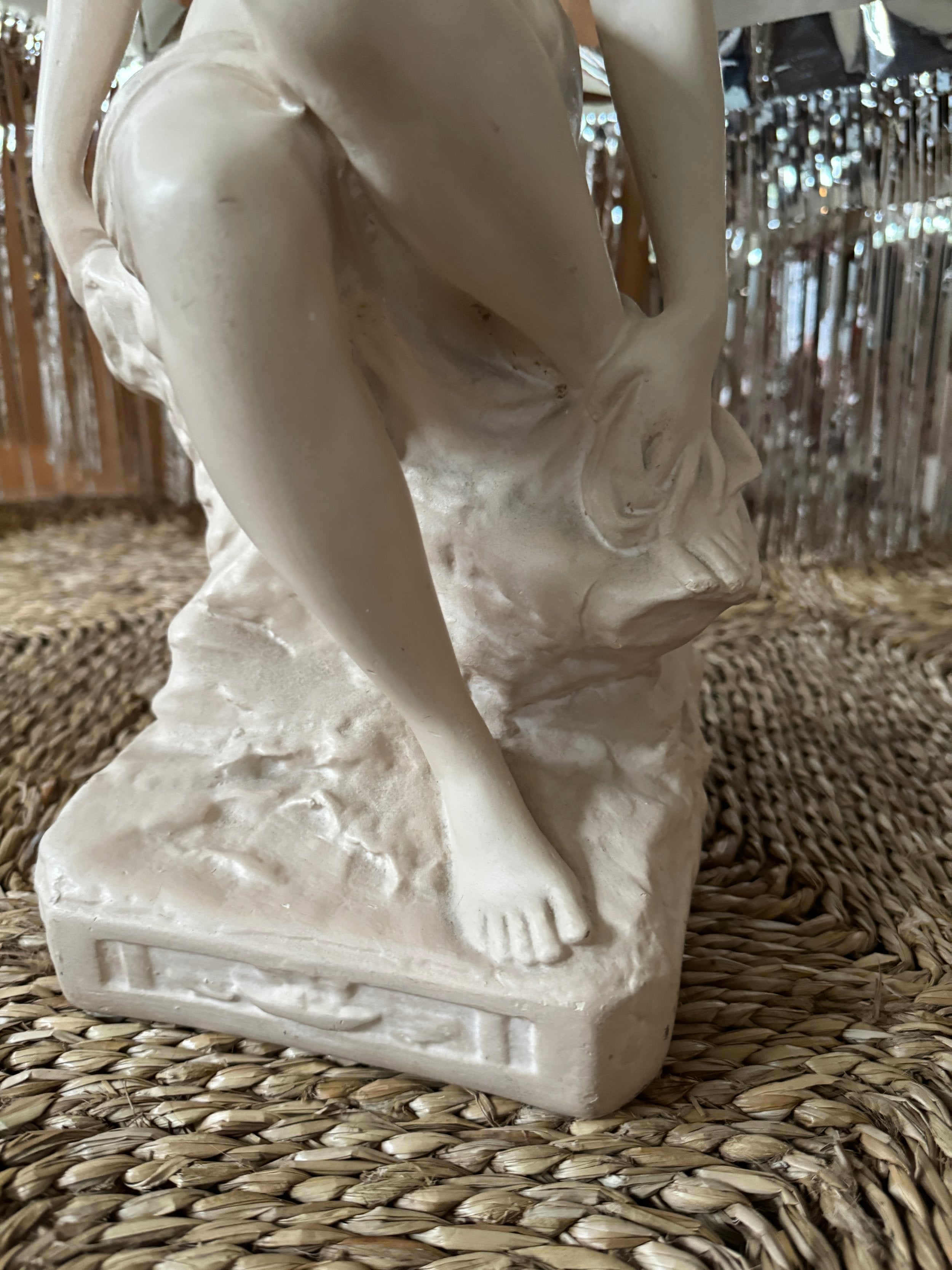 Here is the second of two ceramic figurines that have just arrived into the studio from Sweden. This one is a warm putty colour finish that has some wear that commiserates with age.