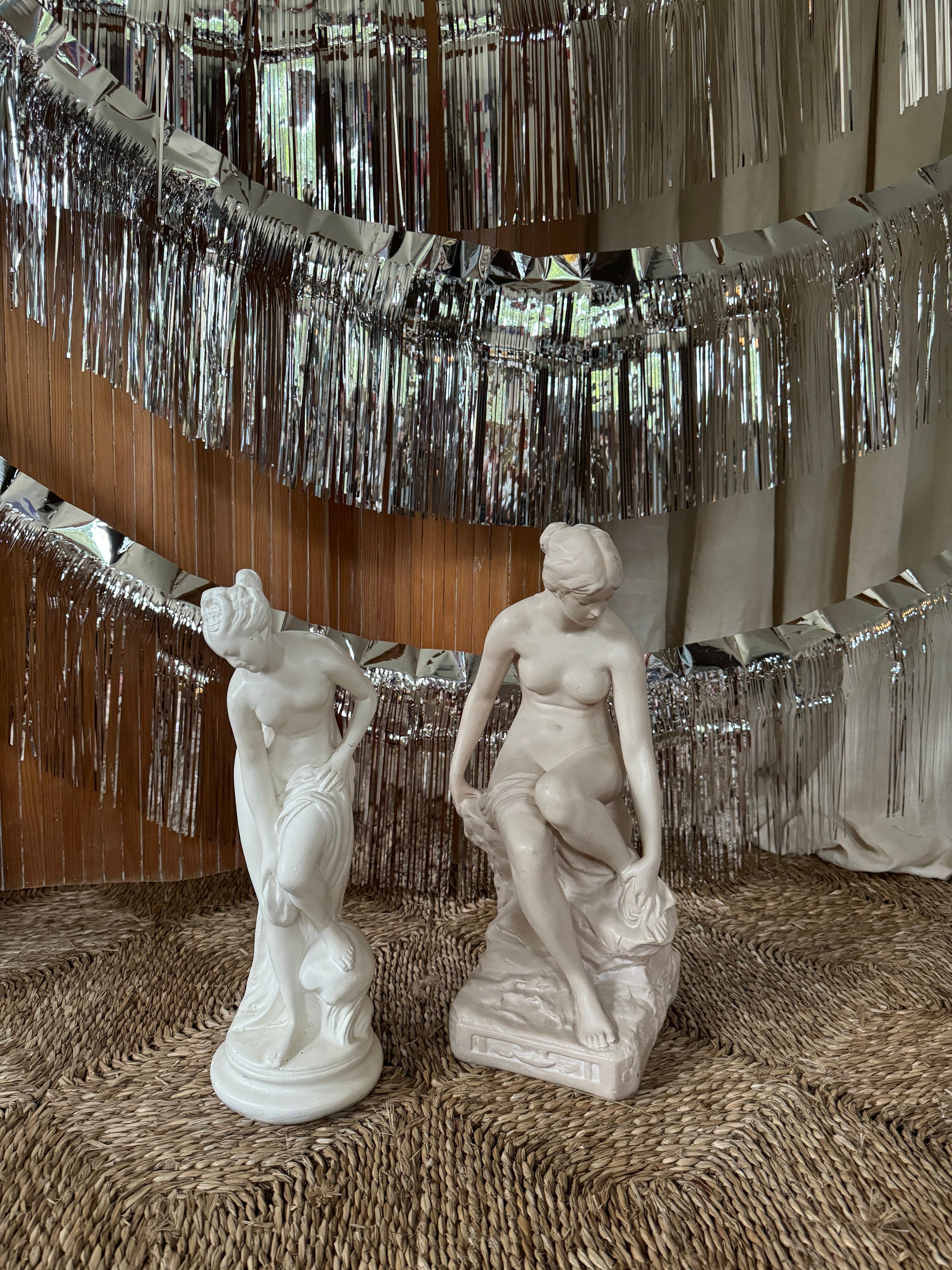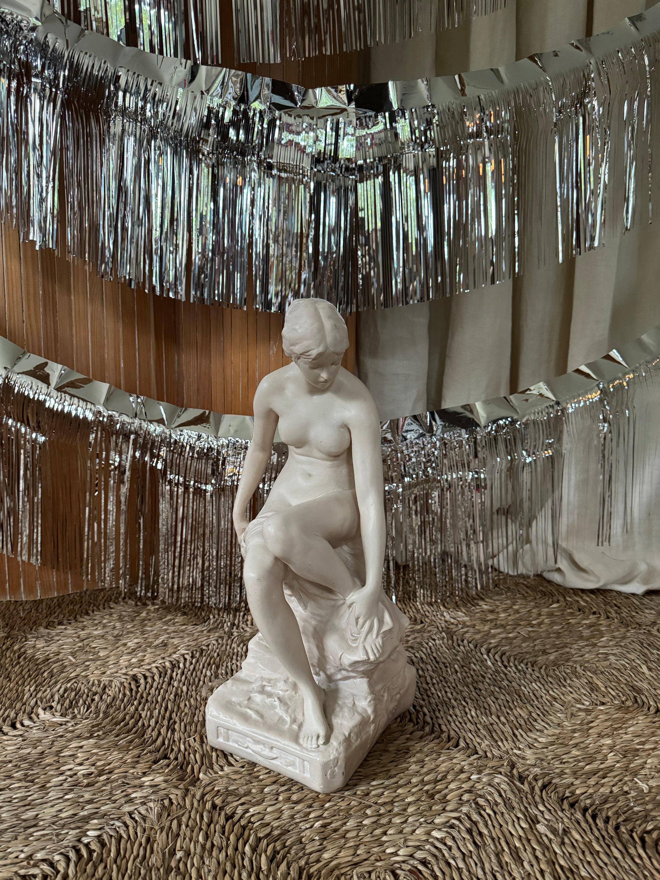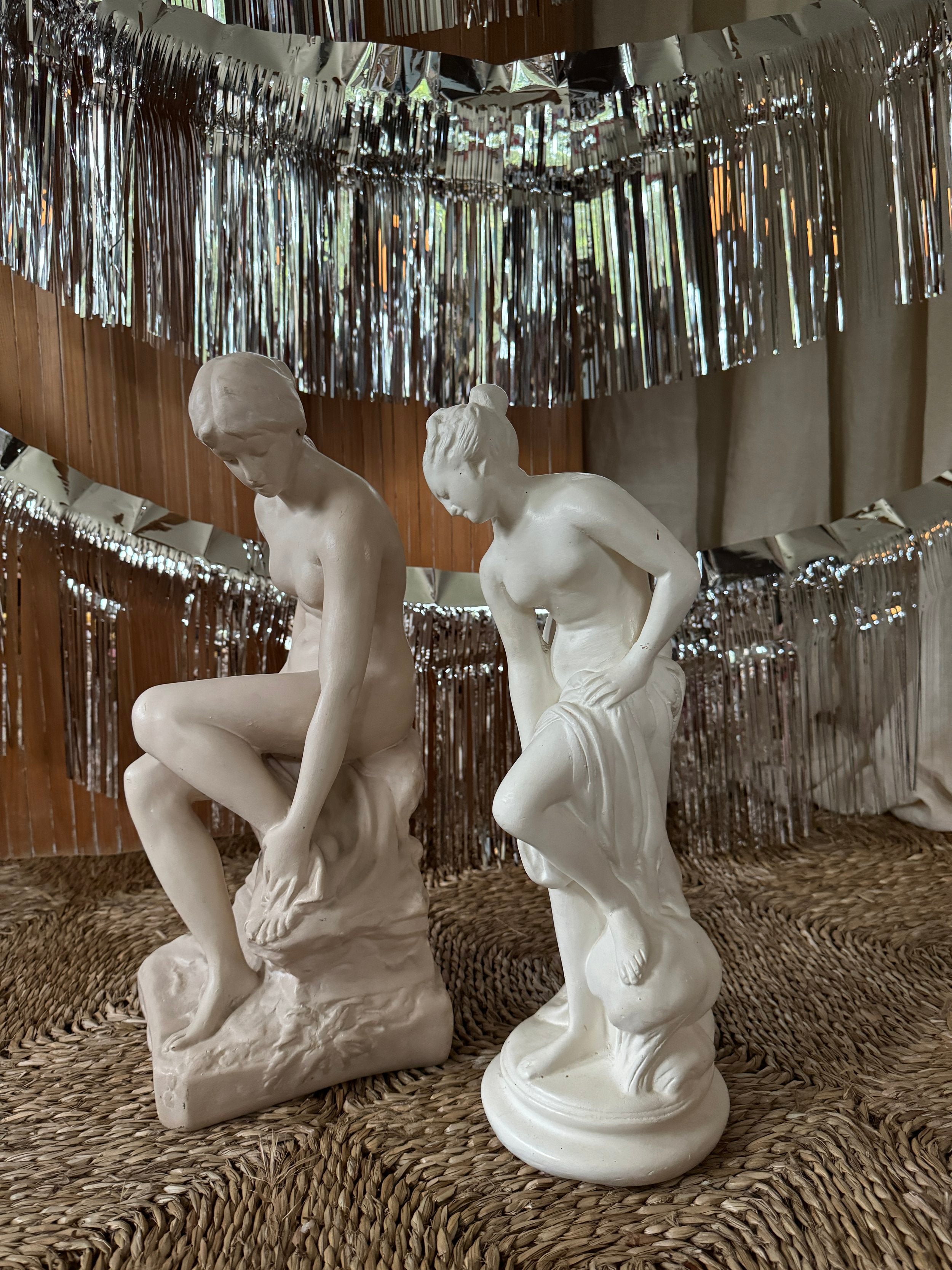 Here is the second of two ceramic figurines that have just arrived into the studio from Sweden. This one is a warm putty colour finish that has some wear that commiserates with age.