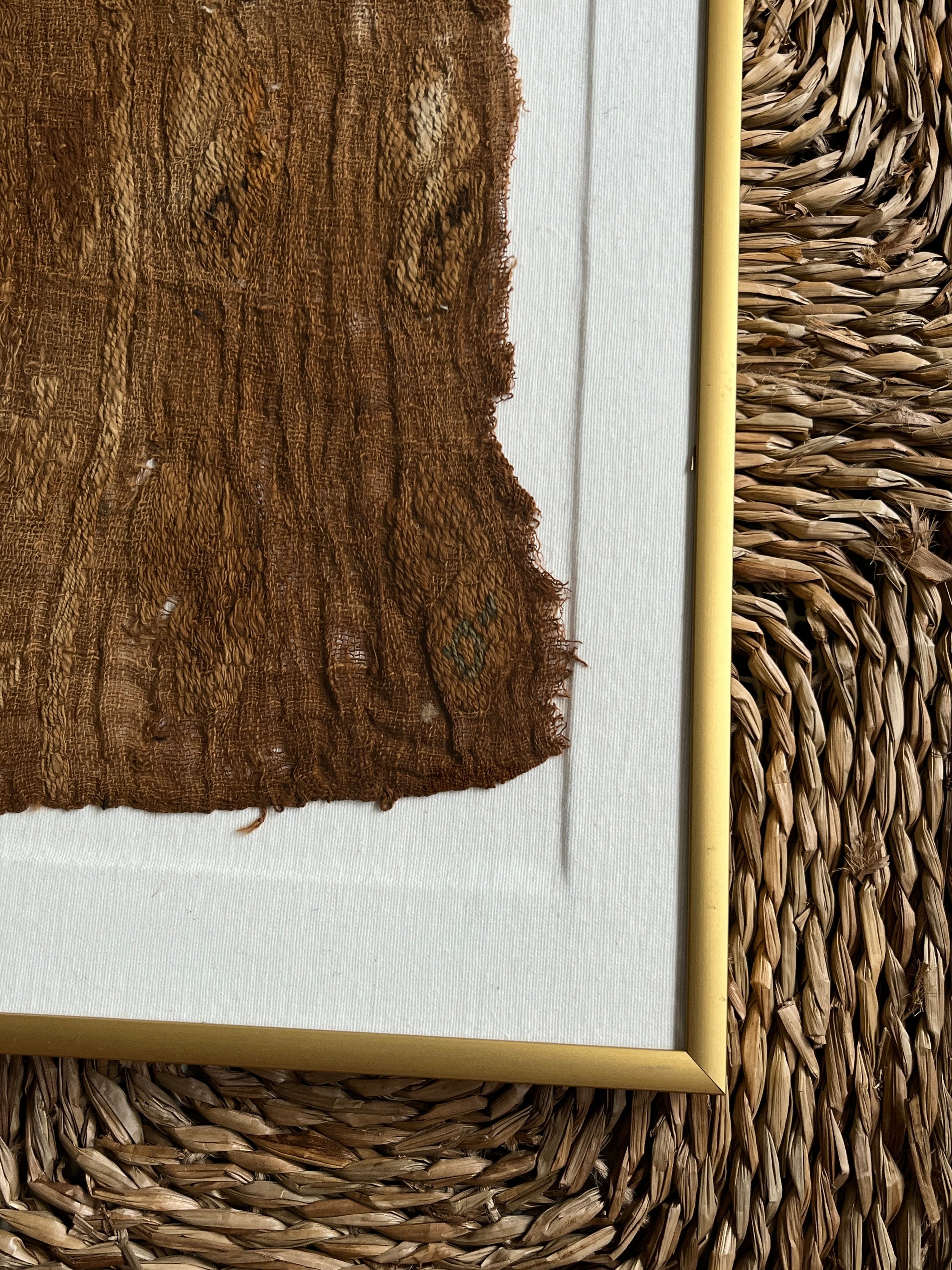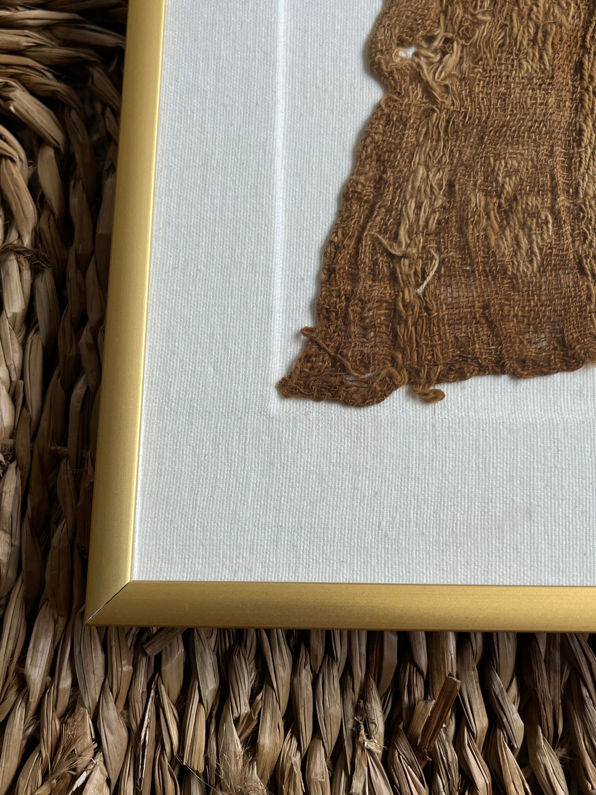 These are pre-Inca pieces. Gold framed behind glass on linen. Each of the five pieces in named after the Quechuan words for 1-5.