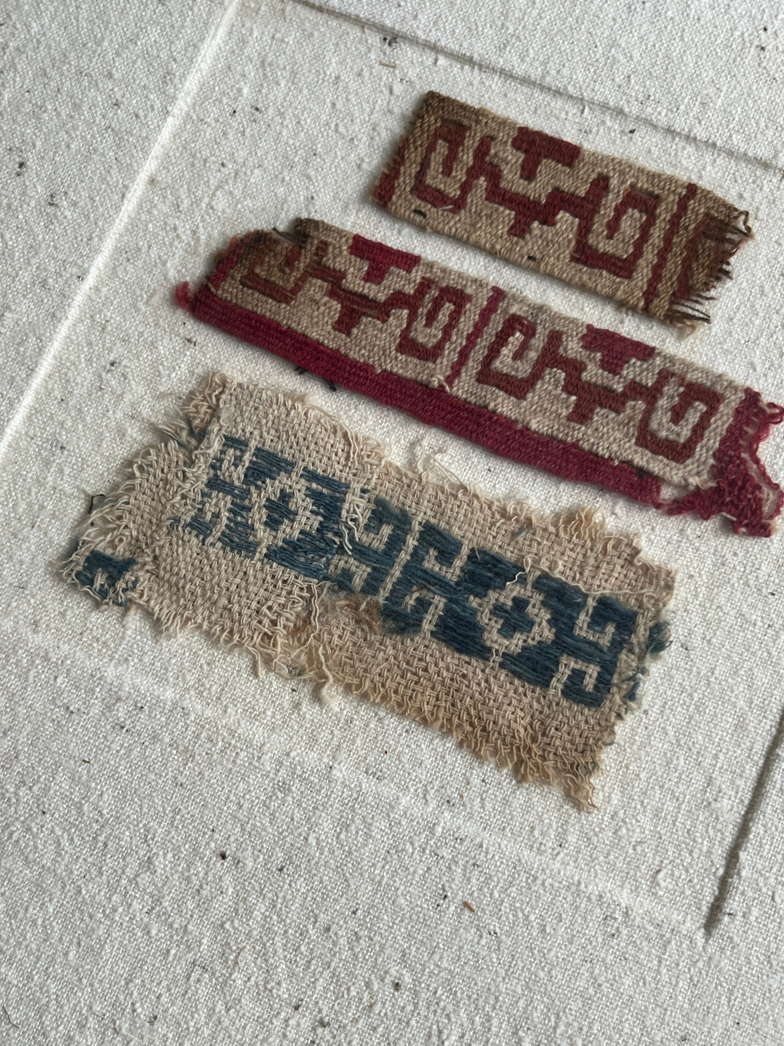 Measuring 12.25in x 12.25in / 31cm x 31cm, here comes the fourth in a series of five pieces of history: unbelievable Peruvian textiles from the Chancay and Chimu people woven approximately between 900-1470 AD. These handwoven fragments come from a history wherein these textiles were extremely valuable and useful. This is an exceptional piece of history that I can’t quite believe I get to steward to their forever homes. I sourced these from a renowned late Swedish archeologist’s personal collection.