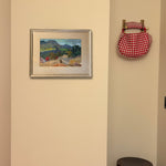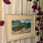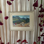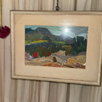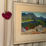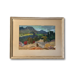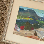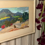 This vibrant midcentury oil behind glass, painted in rich impasto strokes, radiates the energy of the Swedish countryside in full bloom. Bursting with lush greens, bold blues, and pops of warm red, the composition captures the interplay of natural light and the rolling terrain, creating a piece that feels alive with movement and color. Its loose, expressive brushwork lends a modernist touch, while the palette evokes an undeniable sense of nostalgia. Housed in a classic frame that enhances its timeless appeal, this artwork offers a statement for any collector looking to infuse their space with a touch of Scandinavian modernity and warmth. Perfect for layering into a gallery wall or anchoring a console vignette, this piece is a gem of accessible yet striking beauty.